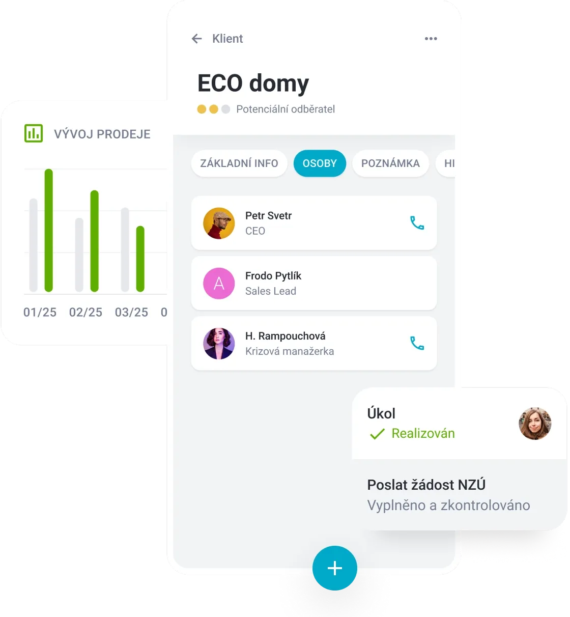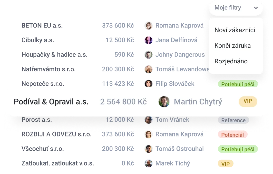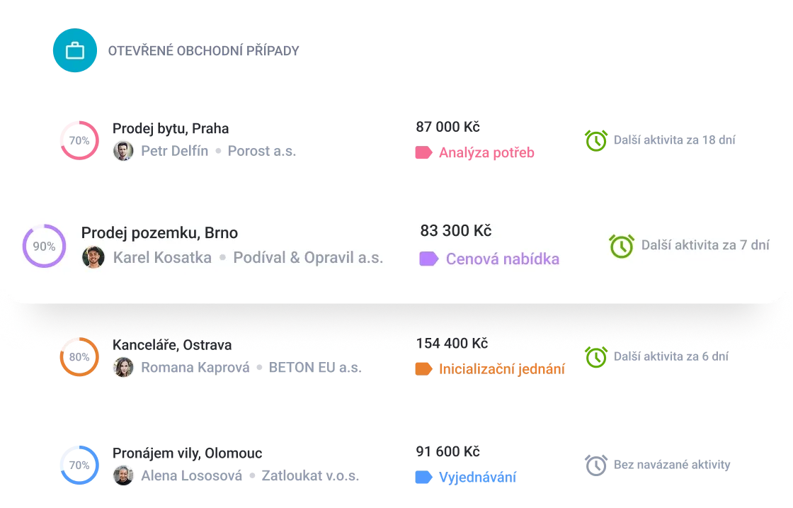 U každého klienta najdete přehled všeho, co jste spolu řešili, ať už osobně, telefonicky nebo e-mailem. Díky tomu máte všechny dokumenty pohromadě a jasnější představu o jeho budoucím potenciálu.