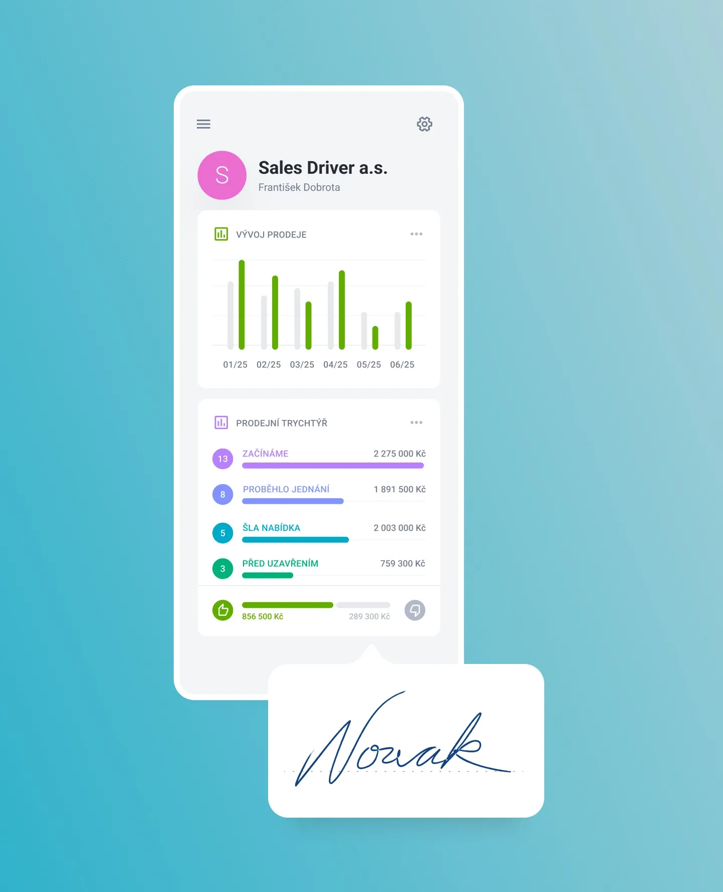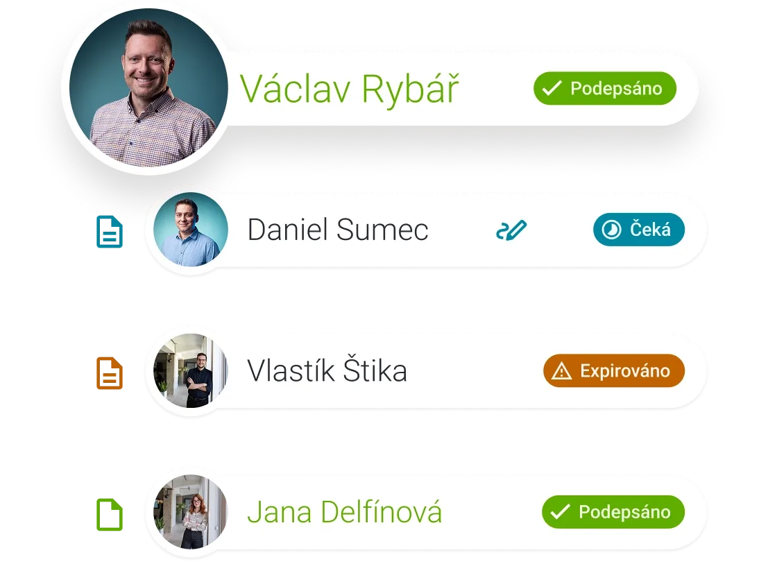 Vyberete dokument, odešlete ho podepisujícím a ti ho myší nebo na displeji svého mobilu podepíšou. To vše pohodlně z rozhraní CRM.