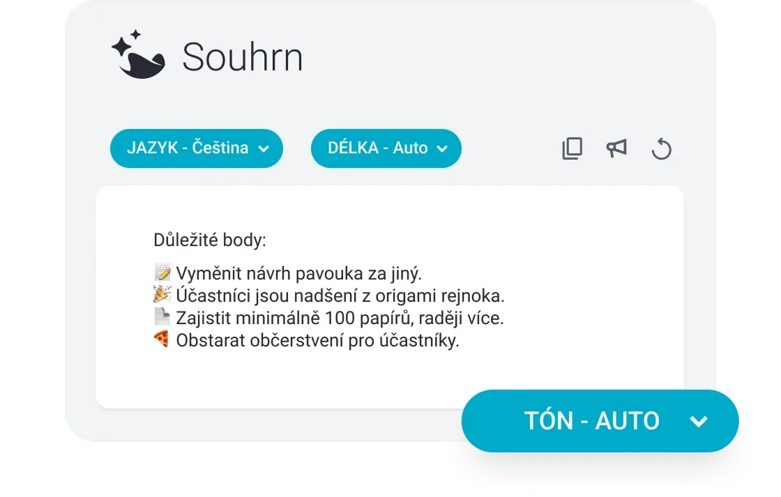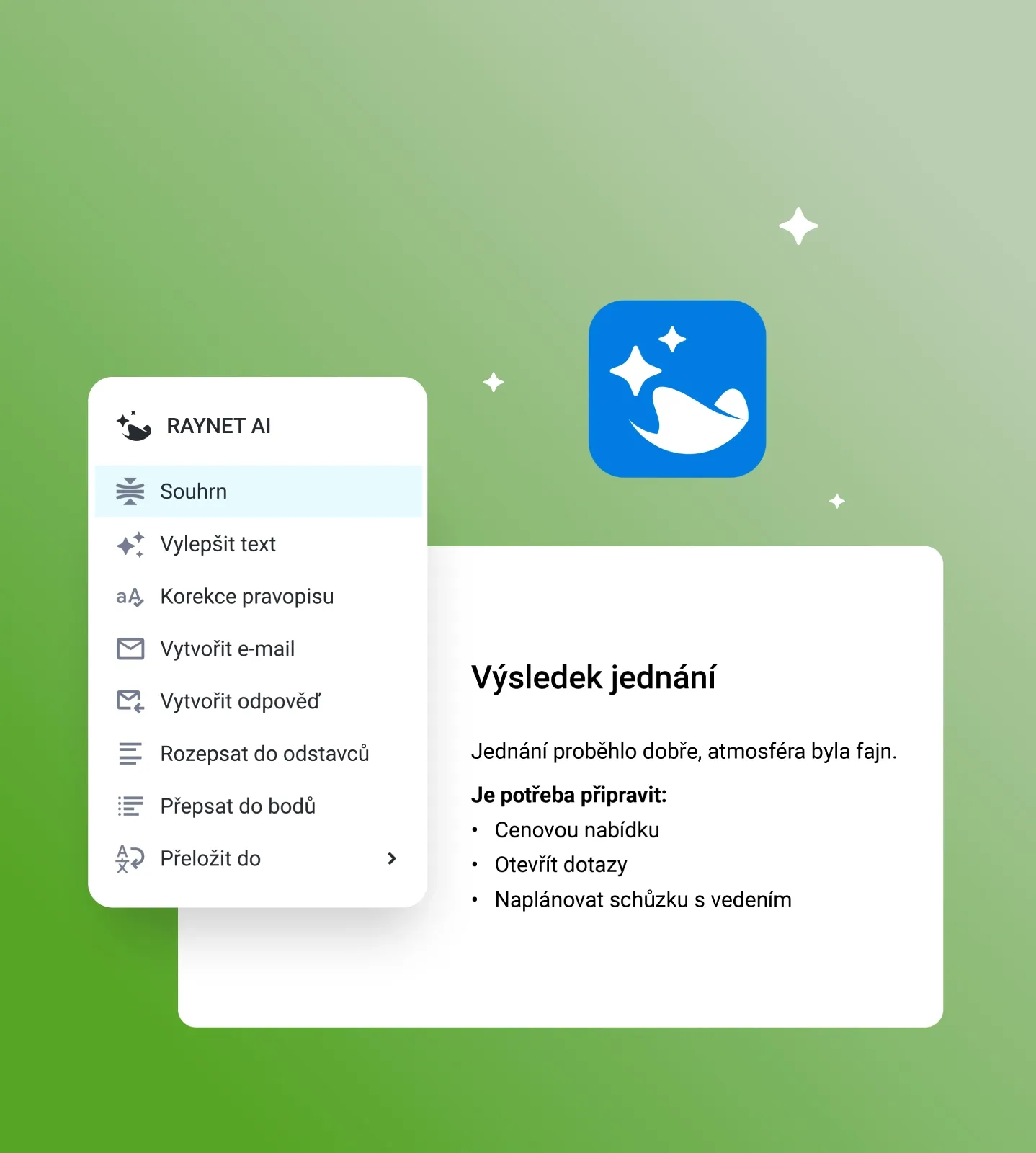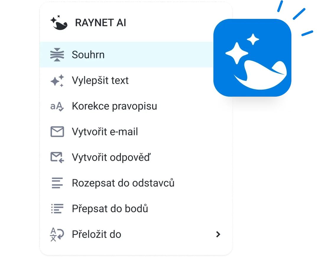 Kouzelným tlačítkem proměníte své poznámky z CRM přesně v to, co zrovna potřebujete. E-mail, souhrn nebo třeba překlad. Bez překlikávání do jiných nástrojů a bez vypisování promptů.