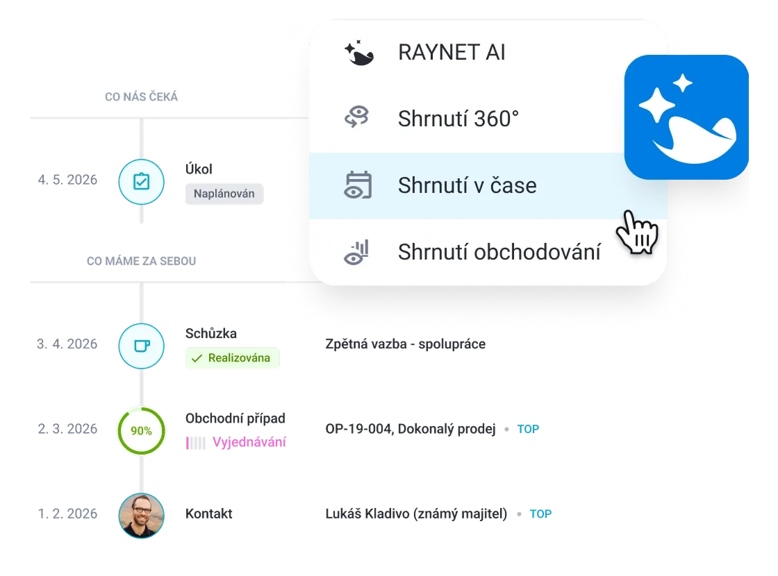 Všechny informace o zákaznících, které Raynetí AI potřebuje, už máte v CRM uložené. Nic dalšího nepotřebujete.