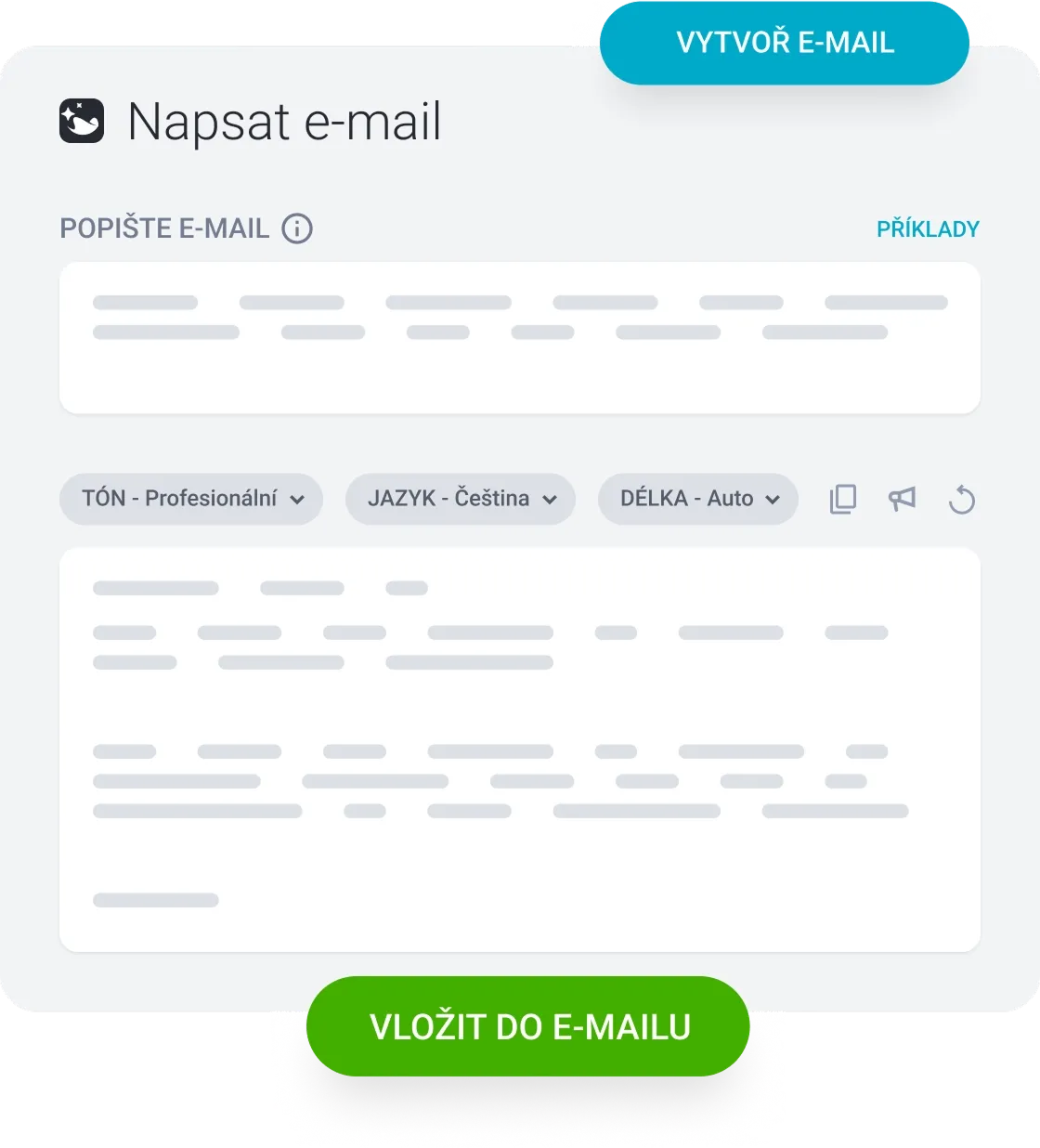 Usnadněte si e-mailování. Strukturu a tón zpráv nechte na AI. Vy jen přidejte data, časy nebo ceny a profesionální e-mail máte hotový za pár sekund.